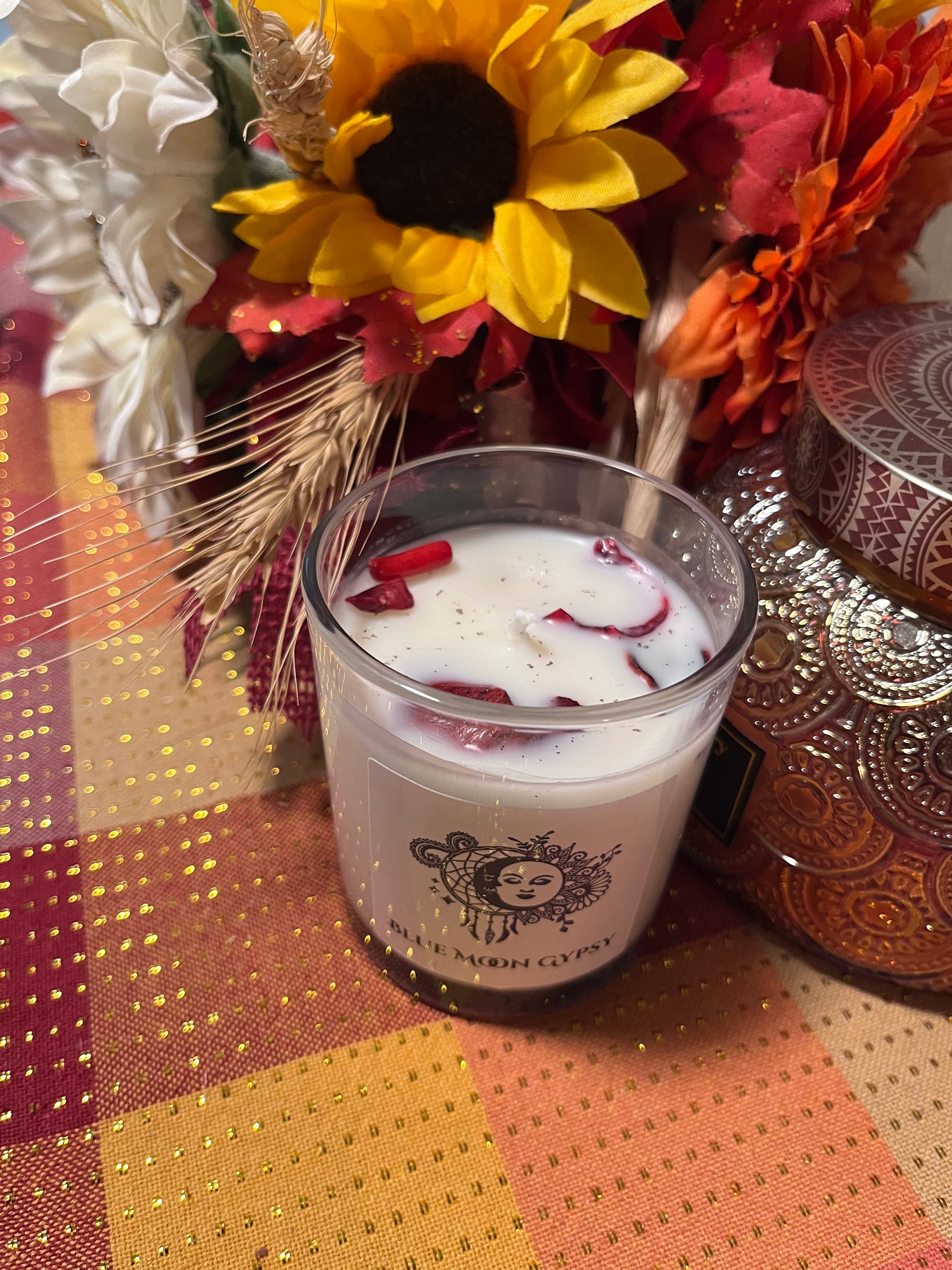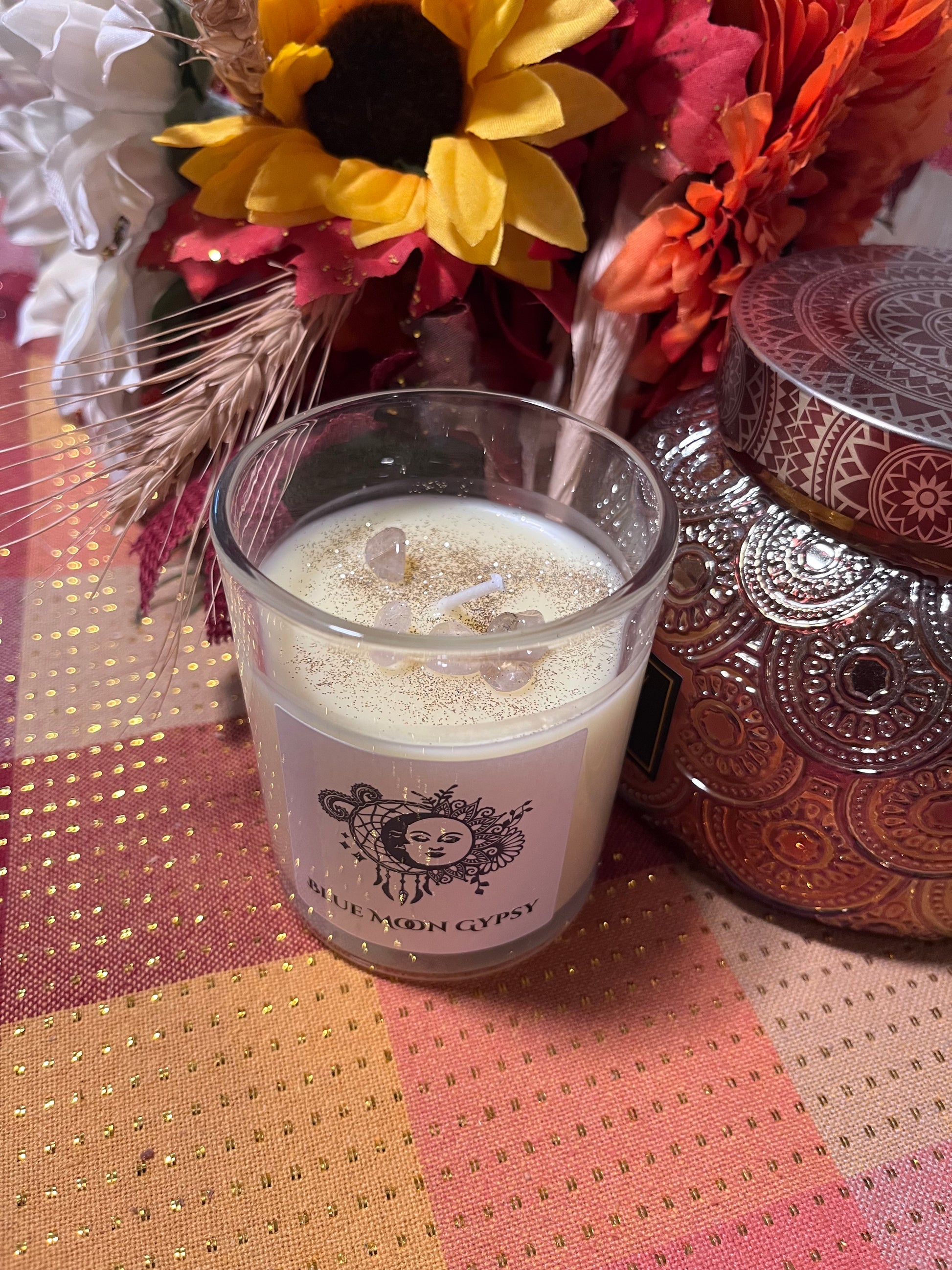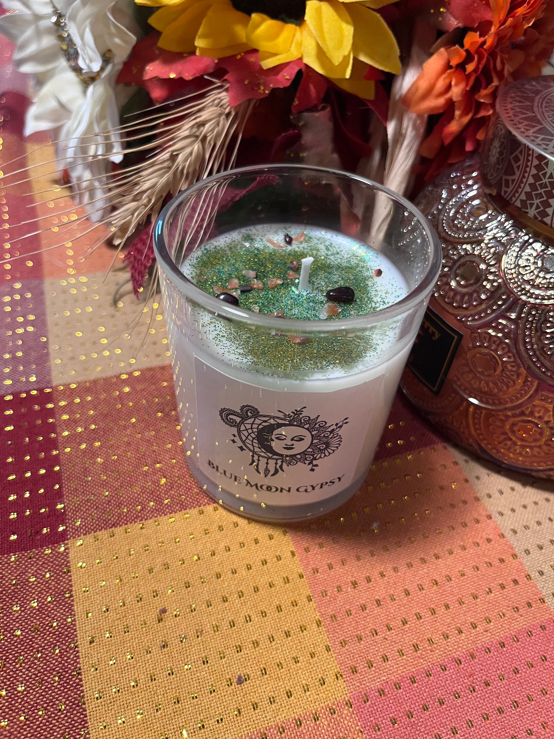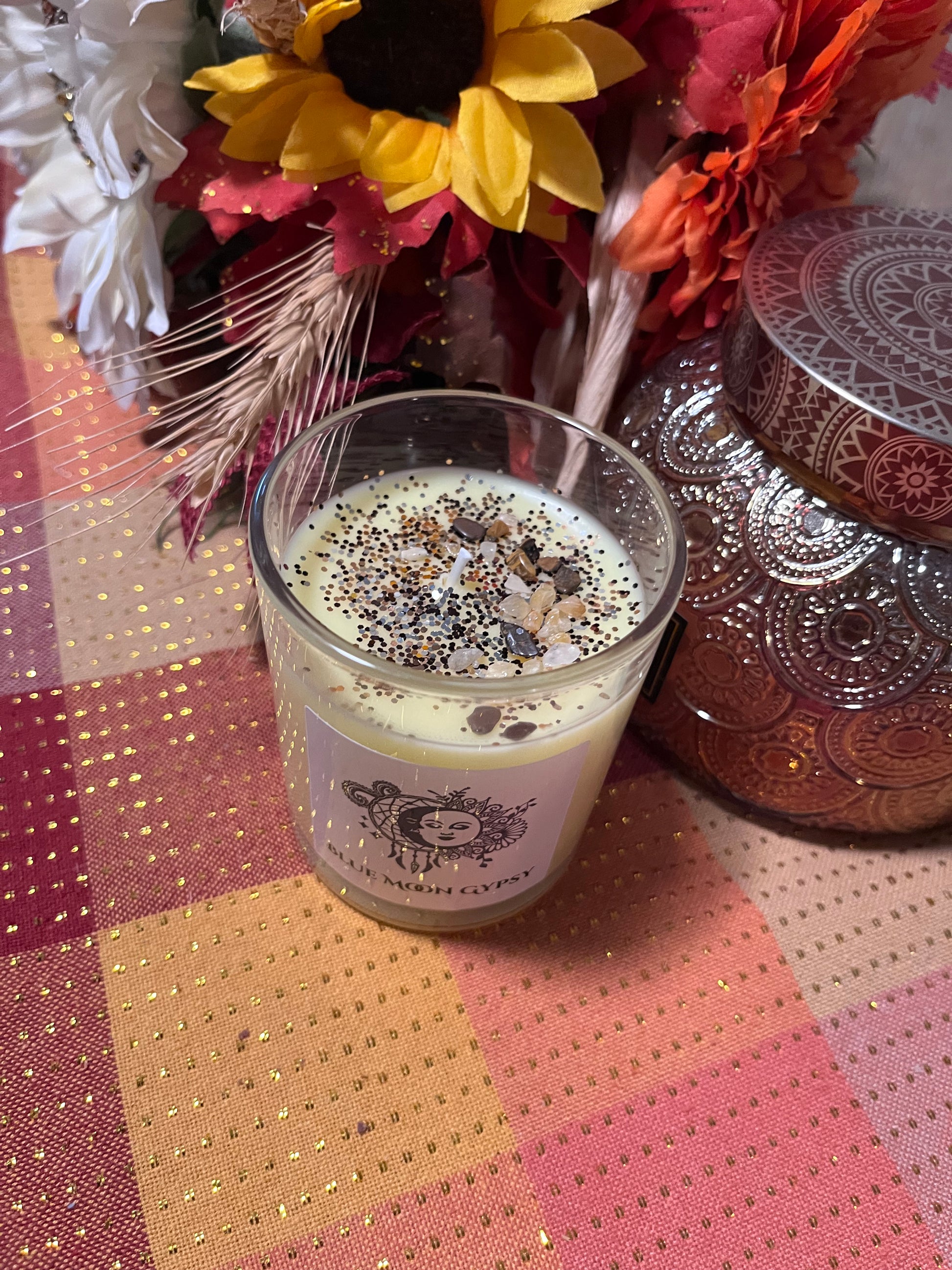 Whether you’re manifesting abundance, grounding your energy, inviting love, or enhancing clarity, these candles offer a gentle glow and uplifting aroma to support your ritual or meditation. Each candle is carefully thought out and planned to harness the positivity and intent of each use. the meaning or property isn't inherent in the candle itself, but your ritual and mediation acts for setting clear intentions. Our candles have small crystals to help with your intent while burning. Perfect for daily intention-setting, gifting, or creating a peaceful, meaningful atmosphere in your home.