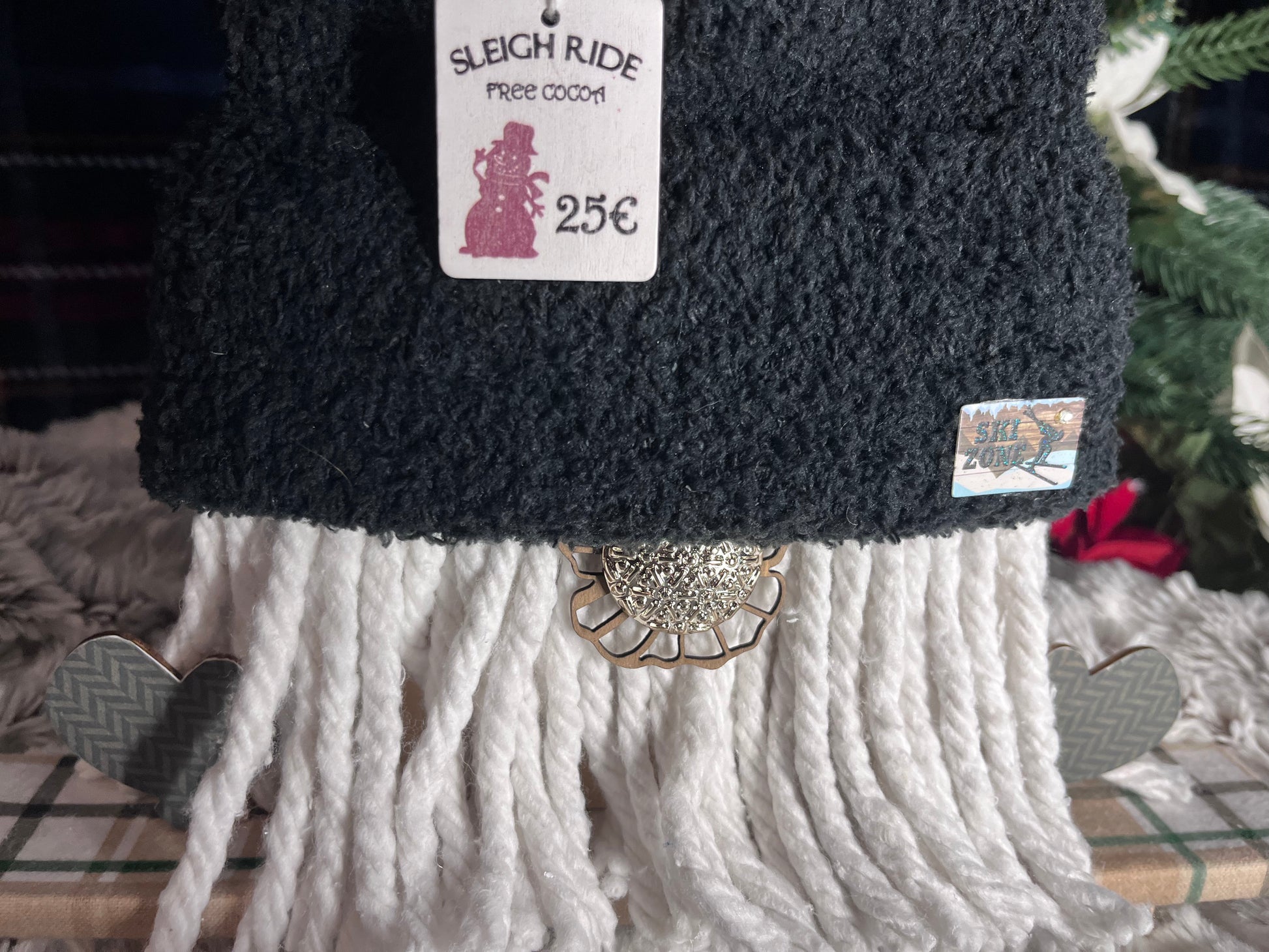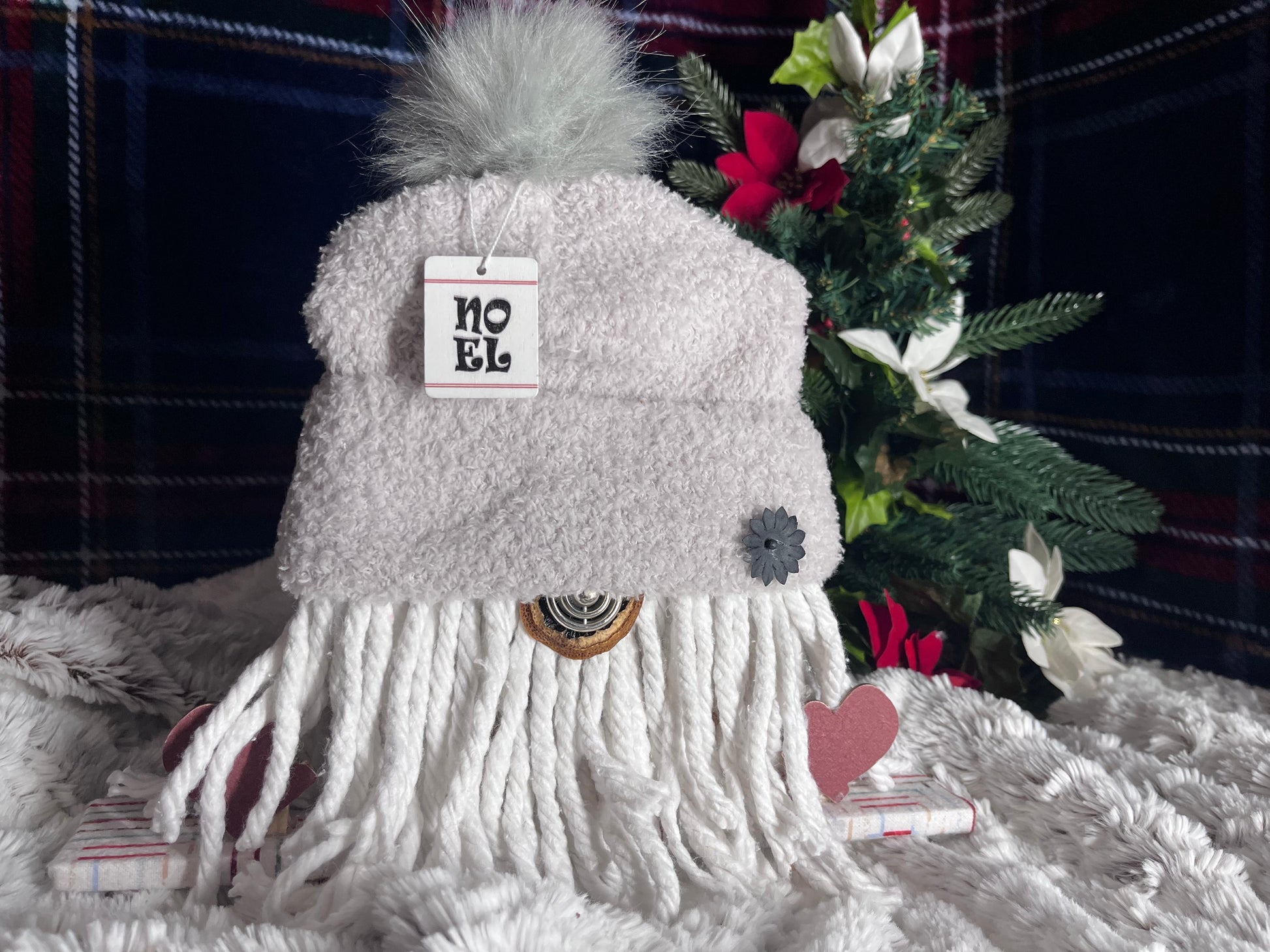 Our gnomes are handmade, one-of-a-kind pieces, created through up-cycling or recycling older objects. These are made of recycled wood planks, various fabrics and thrift clothes. Noses are buttons. They are 12" tall, 12' wide, and 3' deep.