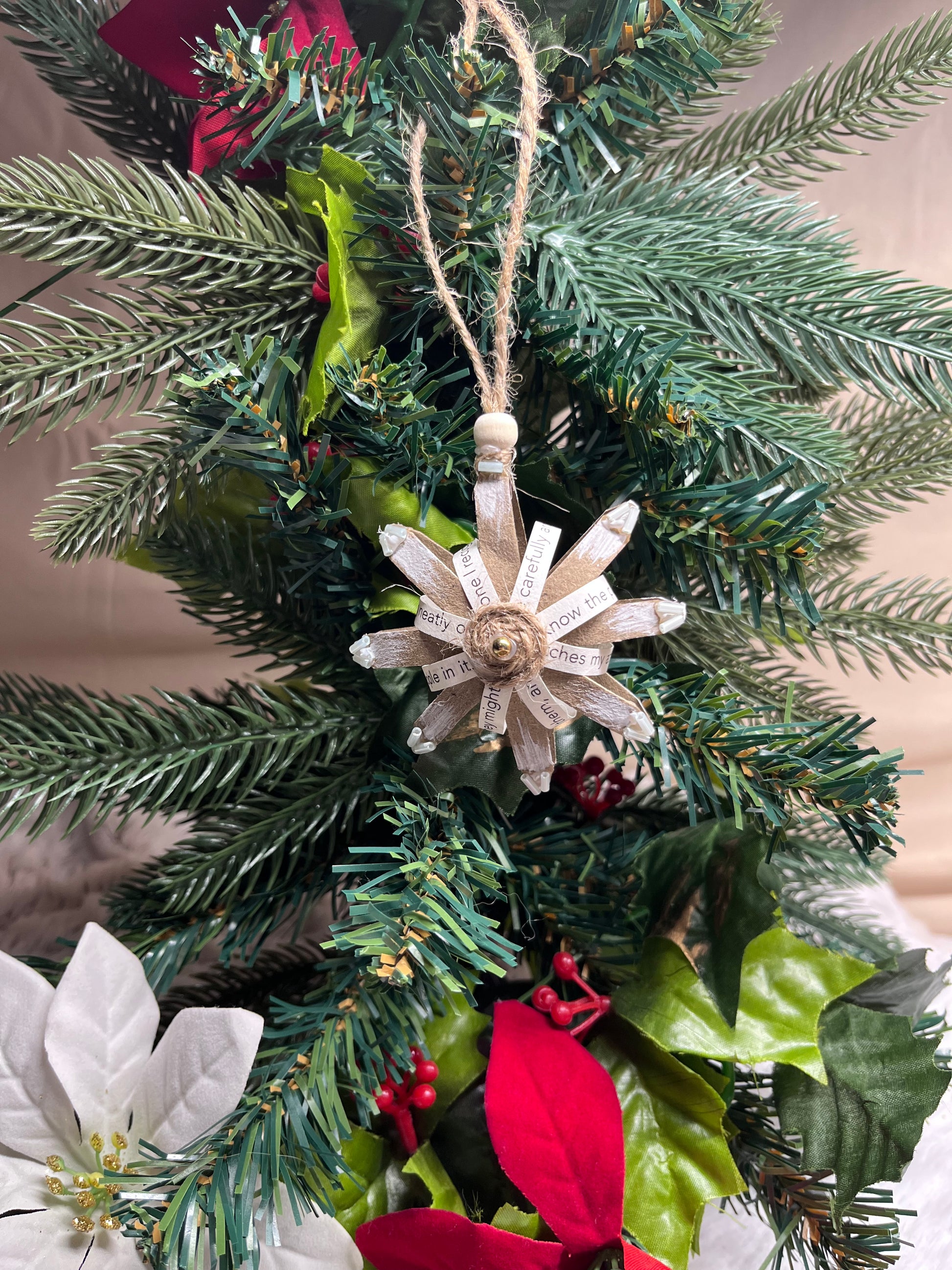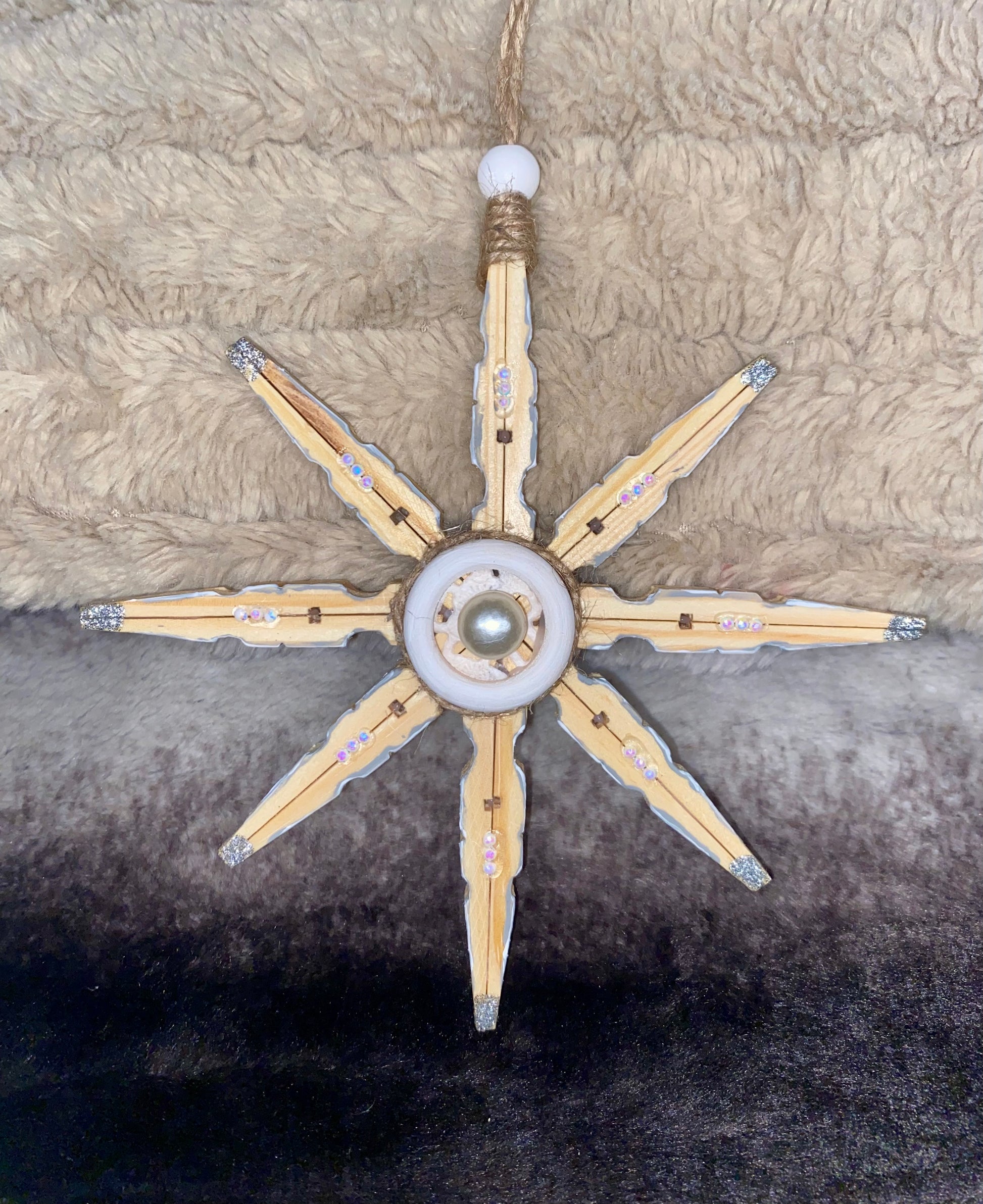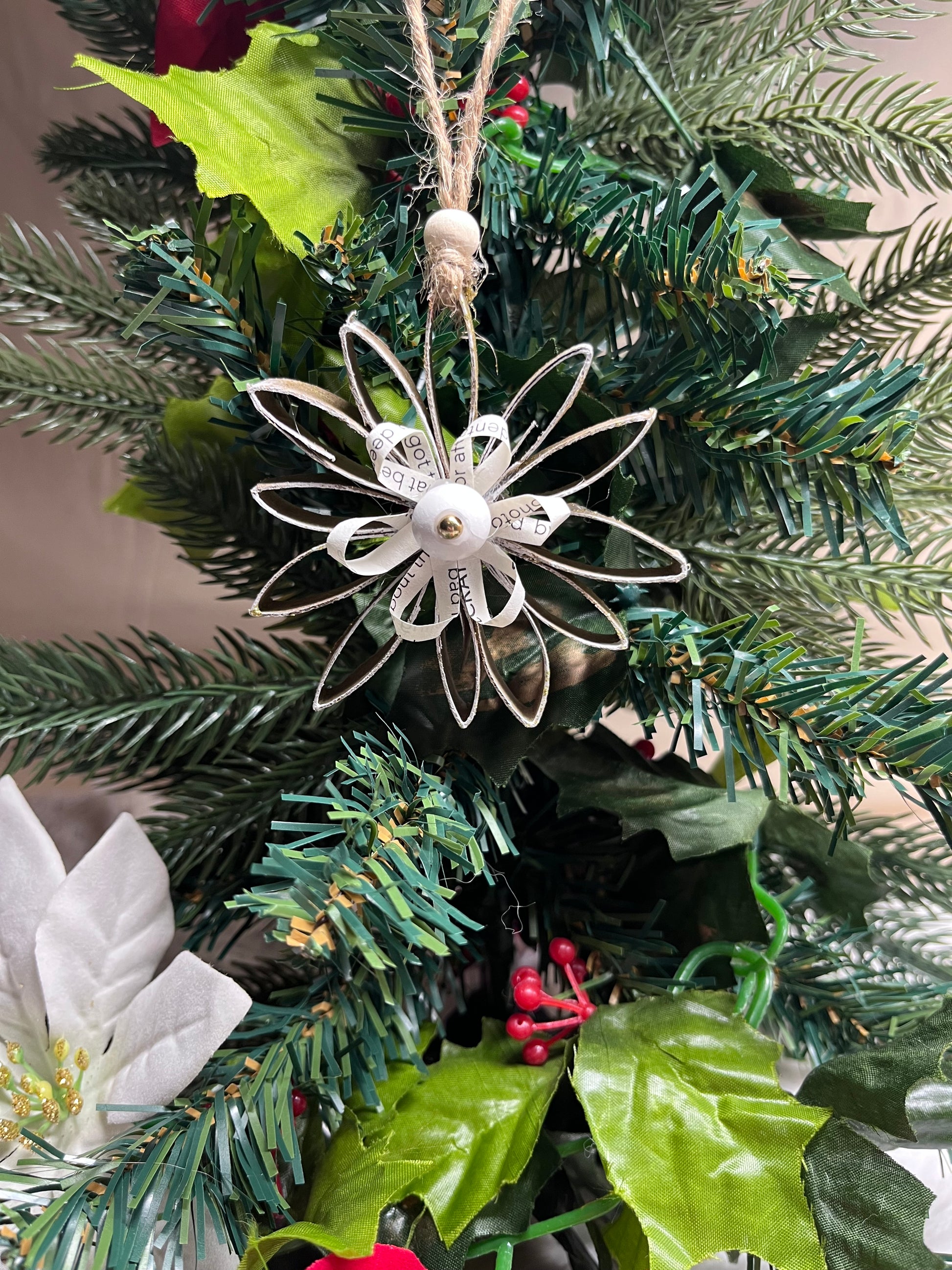 Just like in nature, no snowflakes are exactly the same. These snowflakes are hand made by Blue Moon Gypsy. Each one is made from a different up cycled or repurposed item to make a truly unique and hand made ornament.