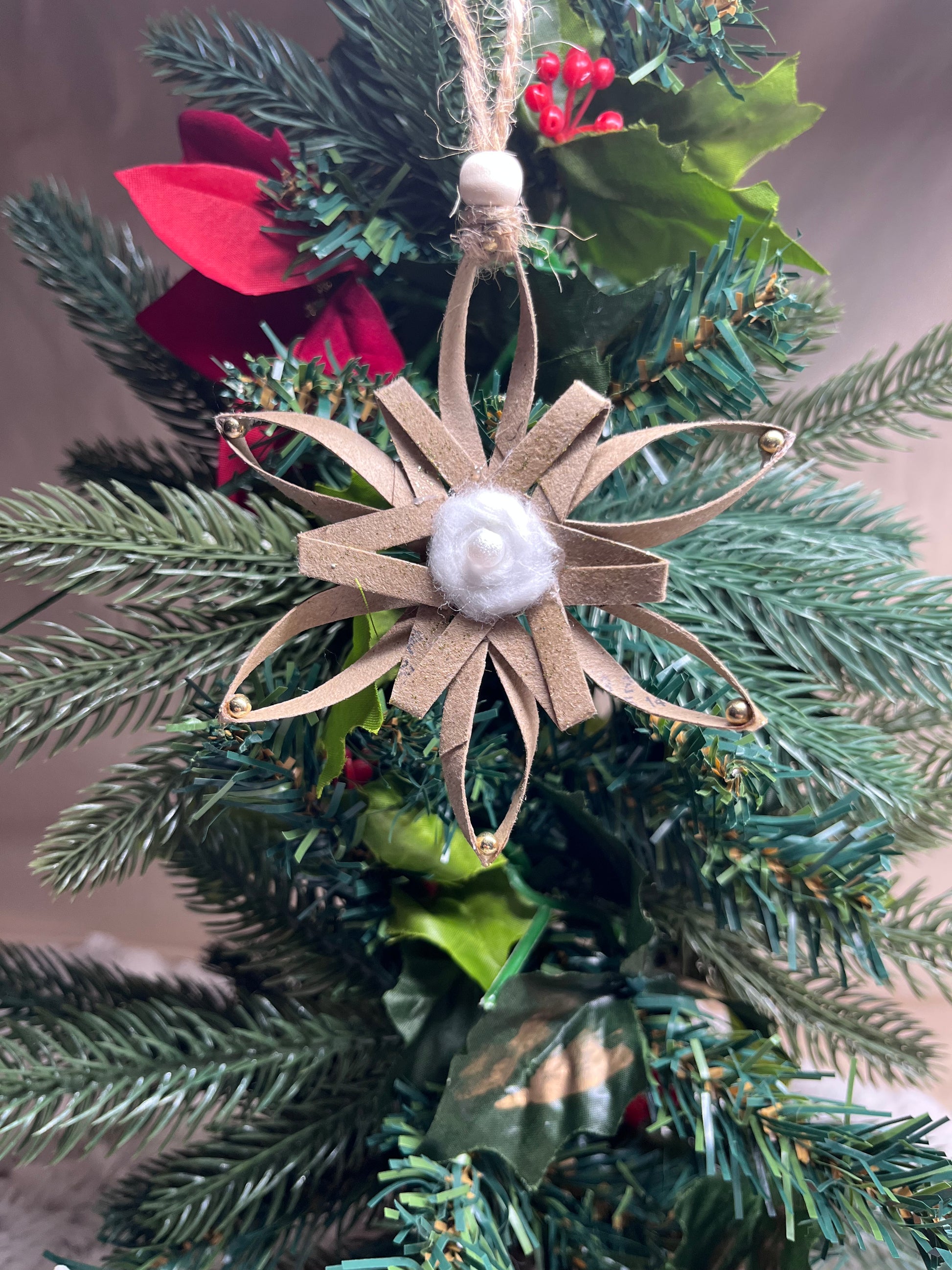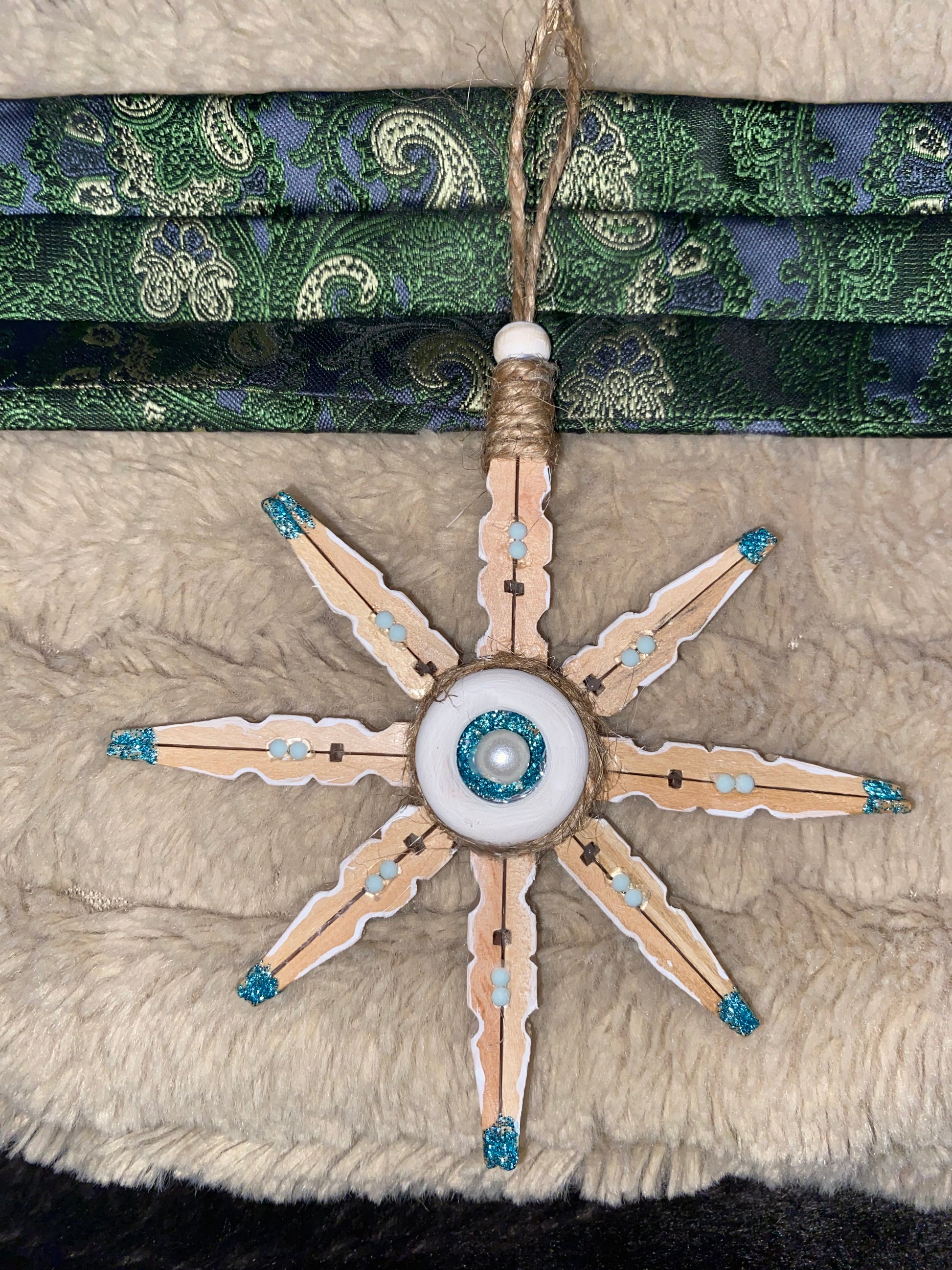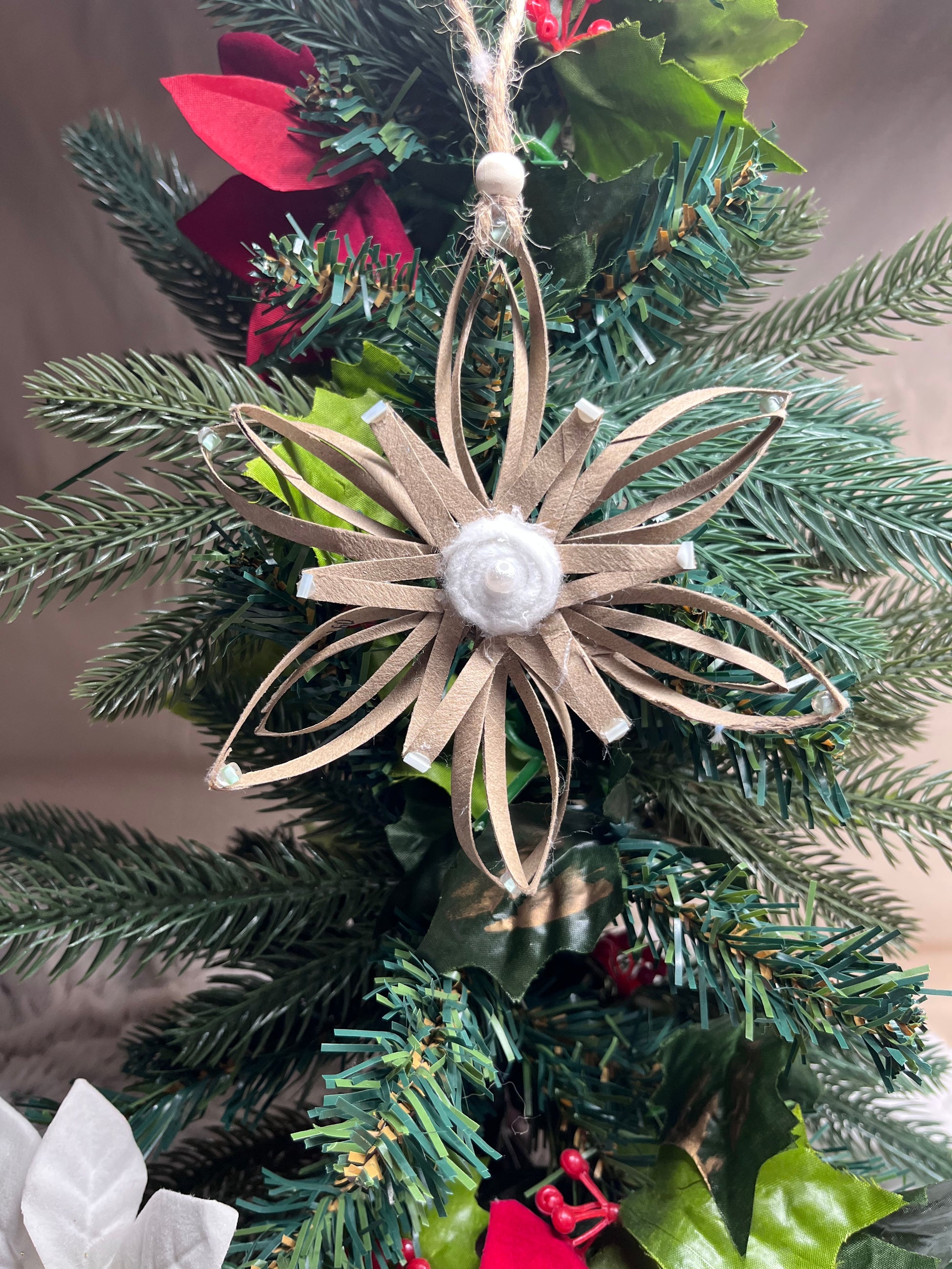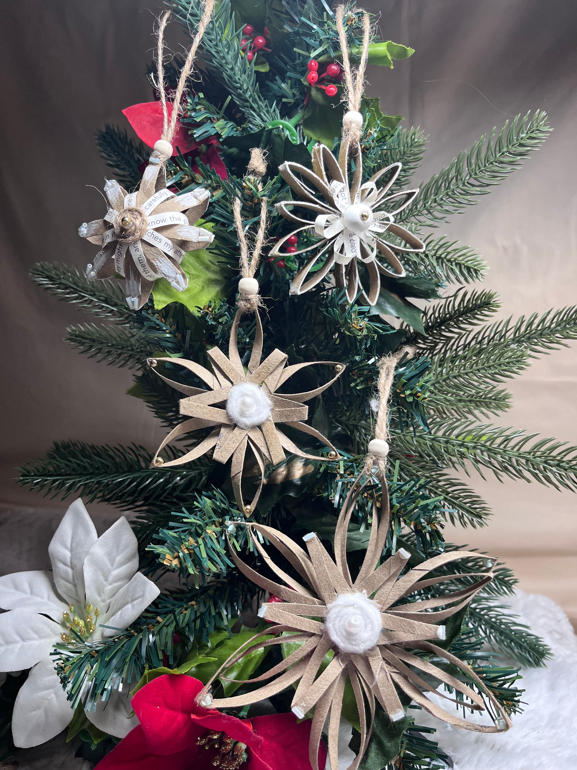 Just like in nature, no snowflakes are exactly the same. These snowflakes are hand made by Blue Moon Gypsy. Each one is made from a different up cycled or repurposed item to make a truly unique and hand made ornament.